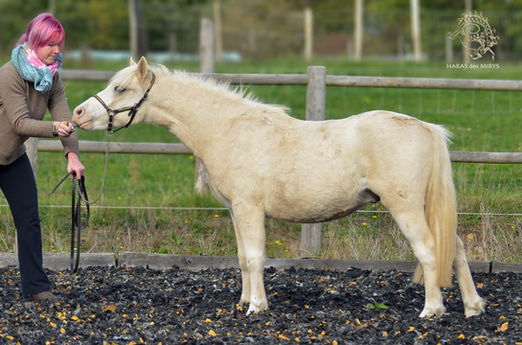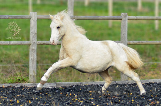 Olorin est un très bon poulain avec des origines solides. Il a déjà un très bon cadre, de l'os, une très jolie tête bien typée qui marquent ses origines. Il bouge de façon très efficace. Sa robe palomino doré, avec 4 grandes chaussettes et une grande liste viennent s'ajouter à ses autres qualités pour en faire un futur étalon intéressant ou un futur poney pour enfant. Une qualité rare sur le marché français.